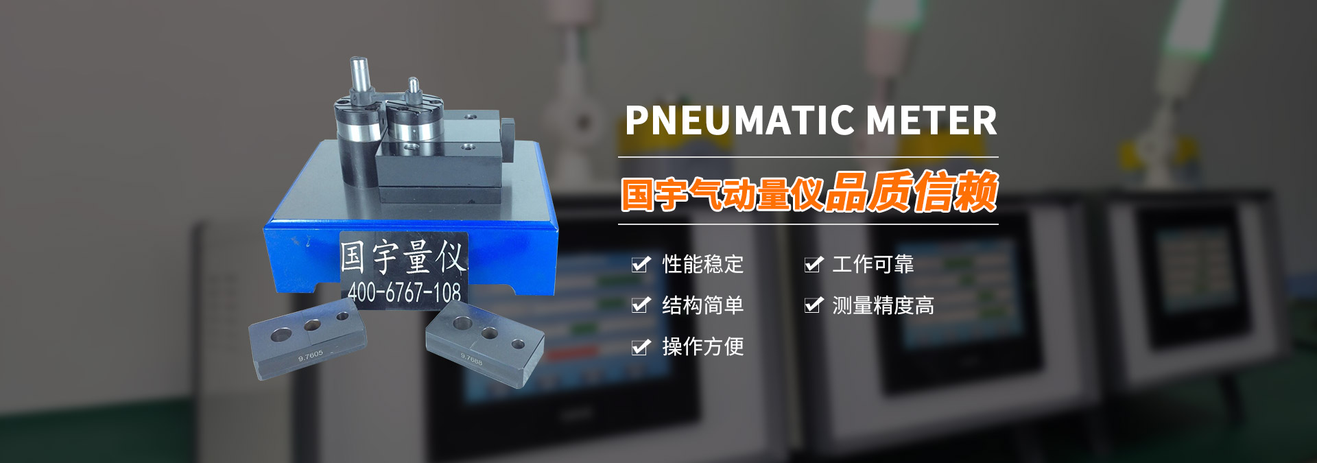 國(guó)宇產(chǎn)品 氣動(dòng)量?jī)x產(chǎn)品主要展示了各種規(guī)格氣電工作站,氣電電子等的量?jī)x。氣動(dòng)量?jī)x操作方法簡(jiǎn)單,讀數(shù)容易,能夠進(jìn)行連續(xù)測(cè)量,很容易看出各尺寸是否合格。能夠?qū)崿F(xiàn)測(cè)量頭與被測(cè)表面不直接接觸,減少測(cè)量力對(duì)測(cè)量結(jié)果的影響,同時(shí)避免劃傷被測(cè)件表面,對(duì)薄壁零件和軟金屬零件的測(cè)量尤為適用。